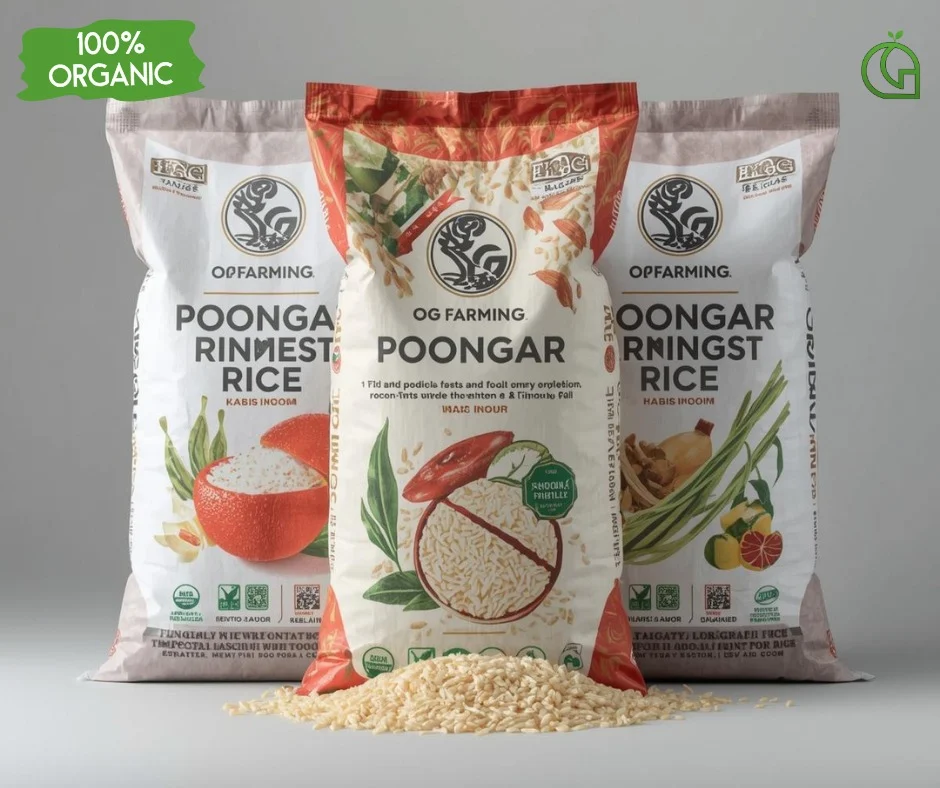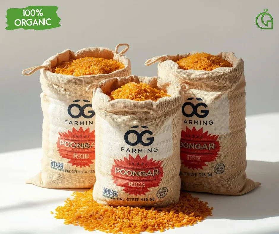 Poongar Rice is a traditional red rice variety from Tamil Nadu, known for its soft texture and mild taste. It is commonly recommended in natural and Ayurvedic diets.
